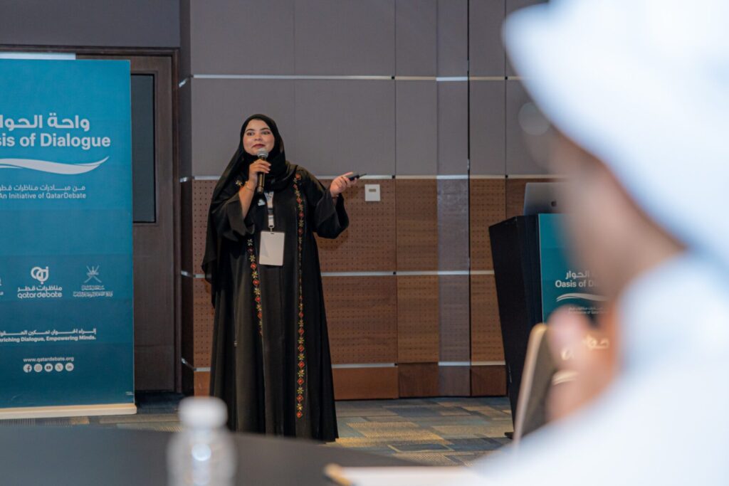وشمل برنامج المنتدى الأول من نوعه جلسة جماعية بعنوان “الهوية الوطنية في دول مجلس التعاون” أقيمت يوم 6 يناير وأدارتها الأستاذة مريم الخربوشي، مدير الهوية الثقافية في وزارة الثقافة والرياضة والشباب العُمانية، التي قالت: “تشرفت بتقديم هذه الجلسة في منتدى واحة الحوار، ورأيت تفاعلًا متميّزًا للطلبة والمشاركين على مستوى المعرفة والثقافة والثقة في النفس عند تفاعلهم ونقاشهم وطرحهم الأسئلة”.