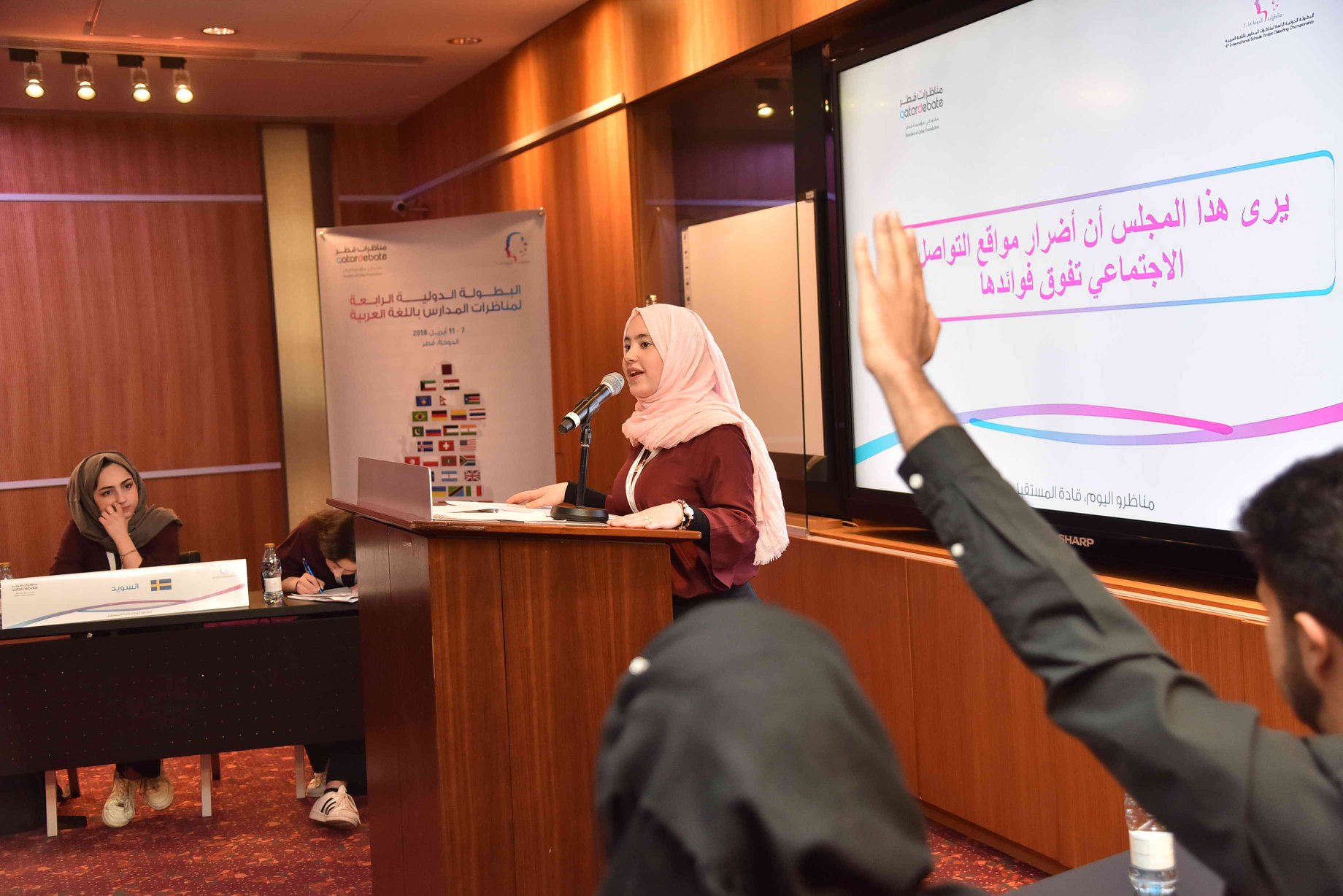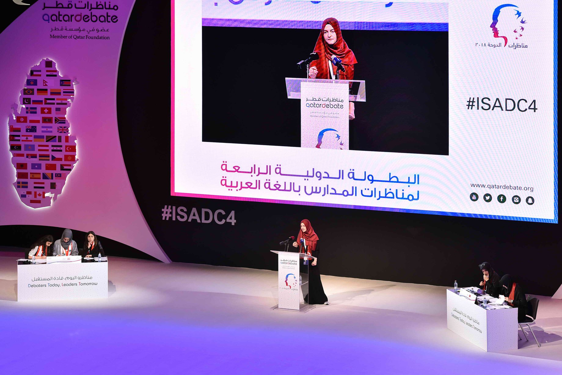 البطولة الدولية الرابعة لمناظرات المدارس باللغة العربية جمعت 250 مشاركا من 50 دولة في أكبر بطولة لمناظرات المدارس باللغة العربية.. وقد أُقيم هذا الحدث المرموق في الدوحة، قطر، في الفترة ما بين 7-11 أبريل 2018، مما وفّر منصة للطلبة للمشاركة في مناظرات مثيرة للتفكير حول قضايا عالمية مهمة، مما عزز التعاون والتفاهم الدوليين مع الاحتفاء بقوة اللغة العربية.