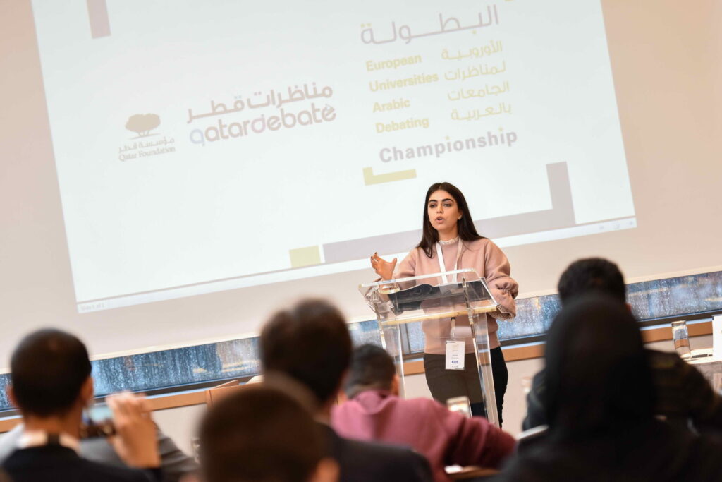 The European Universities Arabic Debating Championship (EUADC) is one of QatarDebate’s regional championships that aims to ignites a passion for Arabic debate and cultural exchange in Europe. This flagship program by QatarDebate fosters a vibrant Arabic debate community, equipping students with critical thinking skills, the confidence to engage in thoughtful discussions on pressing issues, and the opportunity to celebrate the richness of the Arabic language.