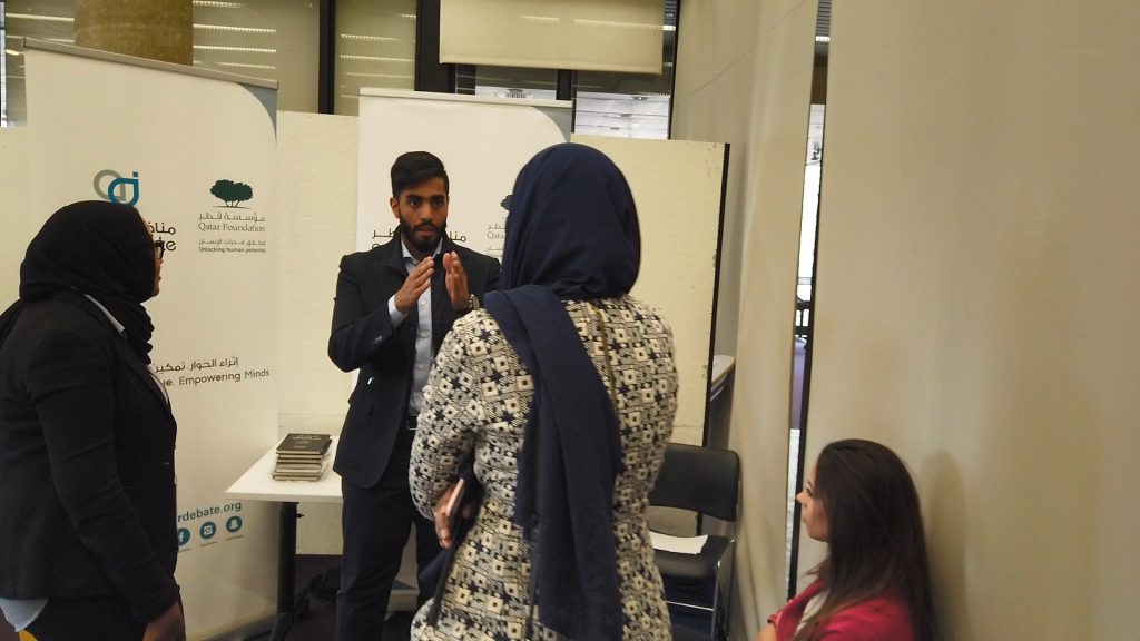 شارك مركز مناظرات قطر – عضو مؤسسة قطر للتربية والعلوم وتنمية المجتمع – لأول مرة بمؤتمر العرب في هارفارد – ولاية ماساتشوستس- بنسخته 12 بوفد رسمي سافر إلى الولايات المتحدة الأمريكية ضمَّ عدداً من ممثلي المركز ومدربيه بهدف تعزيز حضور مناظرات قطر كأحد الداعمين للمؤتمر واستكمالاً للتعاون مع الجامعات الأمريكية بالإضافة إلى تقديم ورشة تدريبية عن المناظرات وجناح تعريفي للمركز يوضح أنشطته وفعالياته.