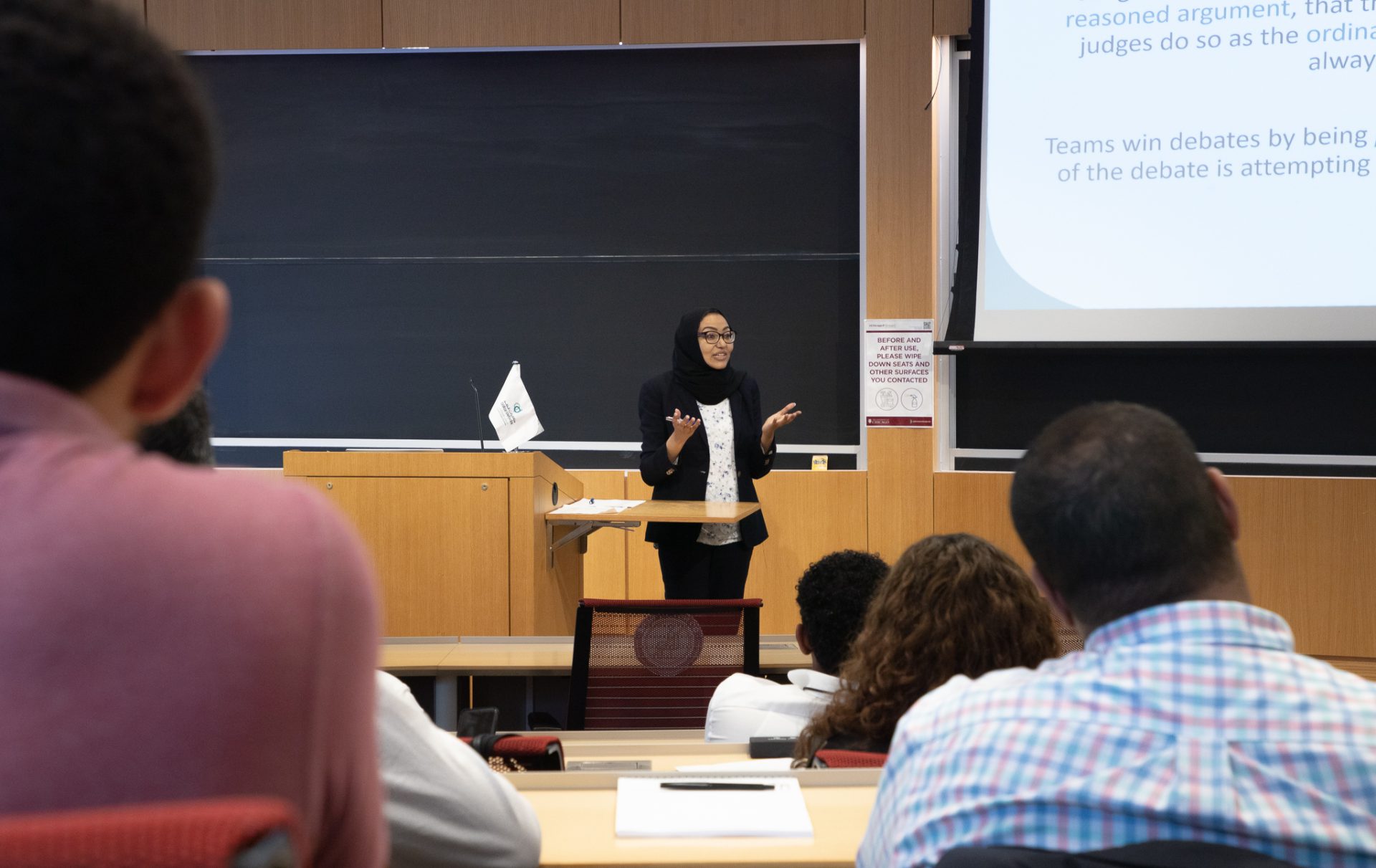 تهدف هذه الدورات إلى تعريف الطلبة بمبادئ النقاش كالتحدث أمام الجمهور ، والتفكير النقدي والحجج ، والتفنيد ،وتحليل القضايا وبناء الموقف.